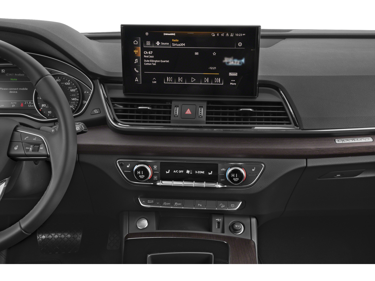 - Radio: Audi Sound System -inc: Audi smartphone interface w/wireless Apple CarPlay, preparation for mobile phone (Bluetooth), MMI touch display w/10.1" center screen and 2 rear USB charge ports